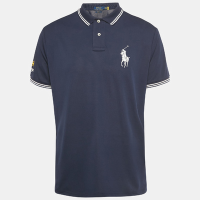 A navy polo that gets the Ralph Lauren balance just right—smart, easy, dependable. The logo print gives it a sportier twist, ready for weekends that blend errands and espresso stops.