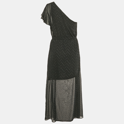 Maje Black Embellished One Shoulder Crepe Maxi Dress L 1225018 (чёрный, lpn31045356)