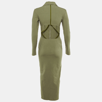 Jacquemus channels sculptural sensuality through the La Robe Obiou maxi dress. Crafted in olive green linen blend, it features artful cut outs and a fluid drape that captures the brand’s architectural minimalism. This piece is an ode to organic form—grounded, refined, and effortlessly striking for summer soirées or destination evenings.