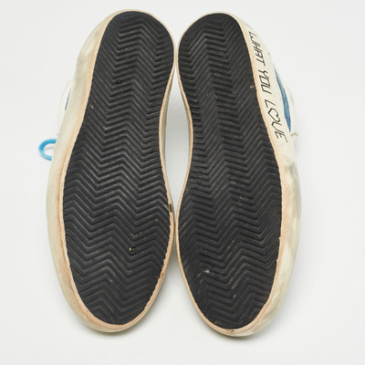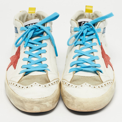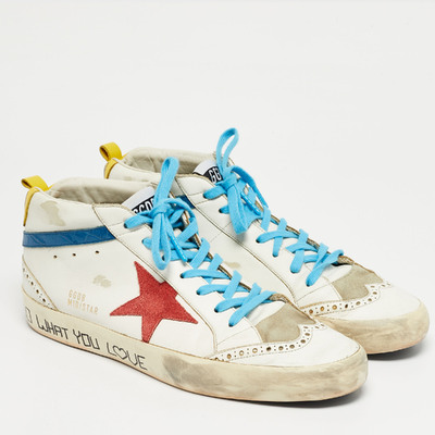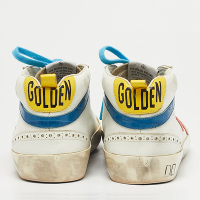 Golden Goose blends smooth white leather with croc embossing and suede patches in a mid top sneaker. The star detailing and lightly worn aesthetic convey effortless character while retaining technical comfort.