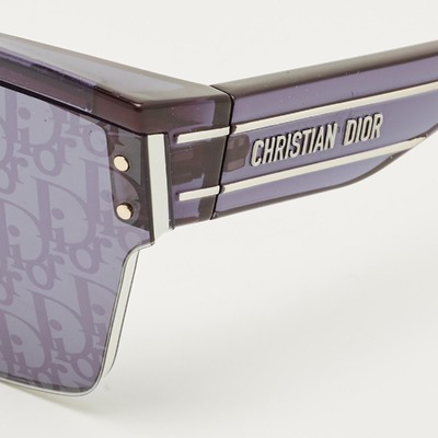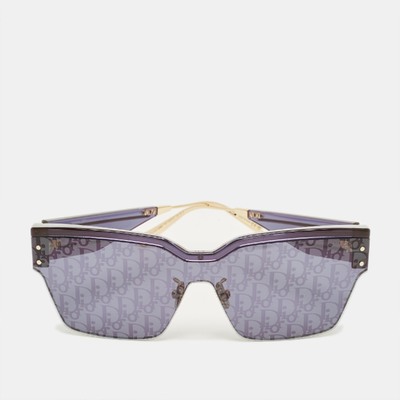These Dior shield sunglasses feature a bold blue lens accented with gold tone hardware and the iconic Oblique motif. The wraparound silhouette delivers both high fashion flair and full coverage. A futuristic statement piece for trendsetters.