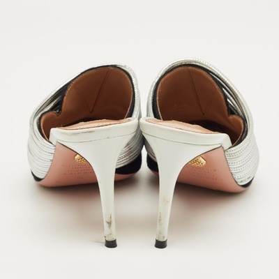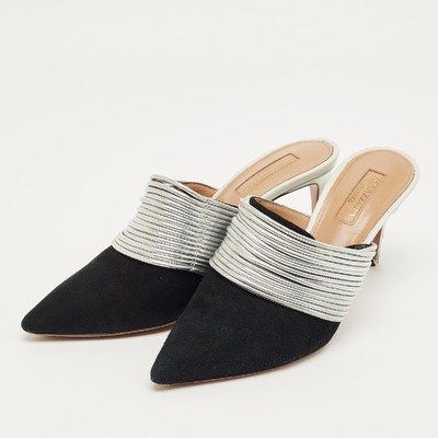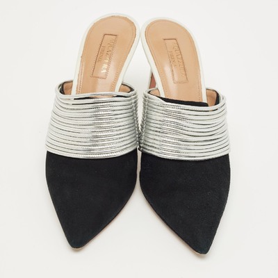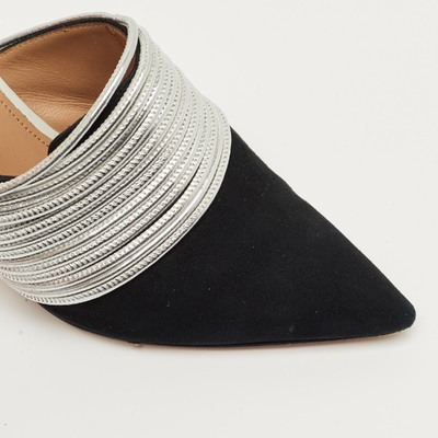 Aquazzura Black/Silver Suede and Leather Rendez Vous Mules Size 36 1228212 (чёрный, lpn31045402)