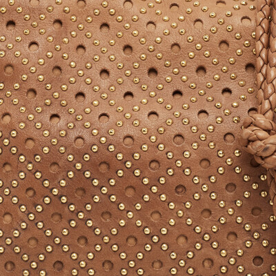 Gucci’s Malika clutch balances vintage charm with modern craftsmanship. Detailed with perforated leather, gold tone studs, and an iconic logo accent, it brings texture and depth to any evening look. A statement in understated glamour.