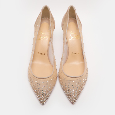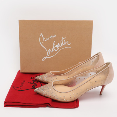 Infused with ethereal sparkle, Christian Louboutin’s Follies Strass pumps are a modern fairytale in motion. The fine mesh base, trimmed with soft suede, is sprinkled with crystals for a luminous effect. Completed with the iconic red sole, they’re the ultimate statement for evenings that call for subtle drama.