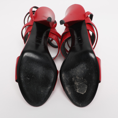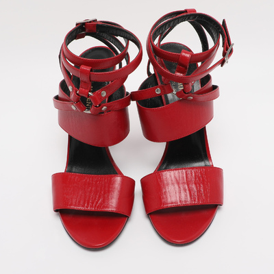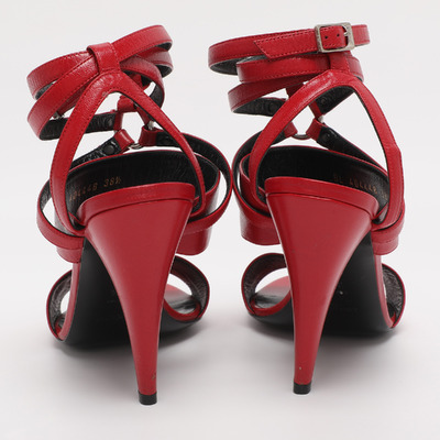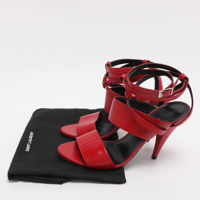Crafted from rich red leather, these Saint Laurent Paris sandals feature a classic ankle strap silhouette. Feminine and sleek, they add a pop of color to any outfit. Ideal for pairing with dresses or tailored separates.