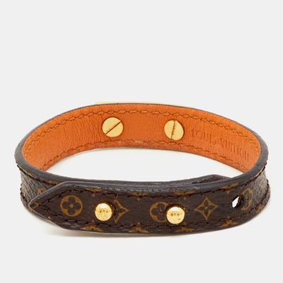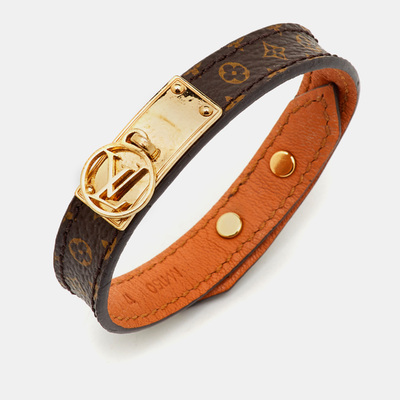 Louis Vuitton’s Logomania bracelet showcases the house’s emblematic monogram reimagined in polished gold tone against rich brown canvas. Effortlessly balancing modernity with heritage, it adds a touch of quiet opulence to any ensemble. Wear it solo for subtle sophistication or layered with bangles for a statement of contemporary luxury.