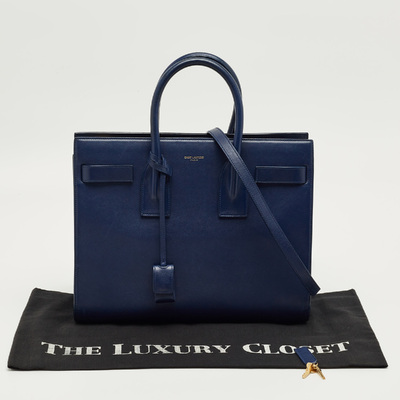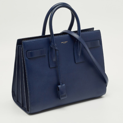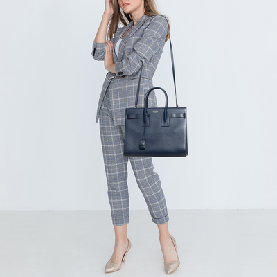 This Sac de Jour tote by Saint Laurent has a structure that exhibits a sophisticated image. Crafted from leather, the bag is held by double top handles and a shoulder strap. The tote comes with a stylish interior with enough space to store your necessities and the bag is adorned with gold tone accents. The brand detailing on the front offers the bag a recognizable sign off.