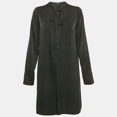 A hint of sheen, a touch of structure. This black satin mini has the ease of a shirt dress but the confidence of something far more deliberate. Can style with sneakers, ballet flats, or heels.