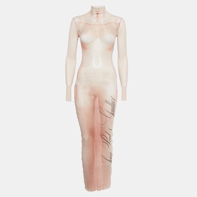 Jean Paul Gaultier Beige Printed Mesh Le Classique Long Dress XXS 1222364 (бежевый, lpn31045529)