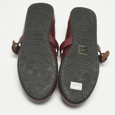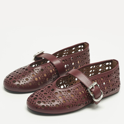 Alaia Burgundy Fishnet Laser Cut Leather Ballet Flats Size 37.5 1228329 (lpn31045545)