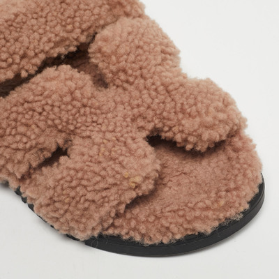 Hermes Beige Shearling Fur Chypre Flat Sandals Size 39 1228175 (бежевый, lpn31045558)