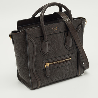 A Celine icon, the Nano Luggage tote is the epitome of Parisian chic. Crafted in grained leather, its structured silhouette and curved front zip pocket create architectural harmony. Compact yet spacious, it’s a collectible piece that embodies minimalist luxury.