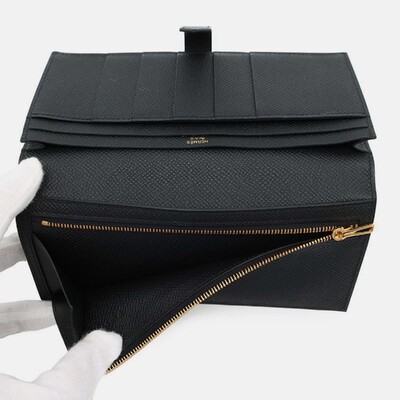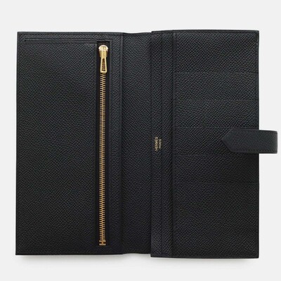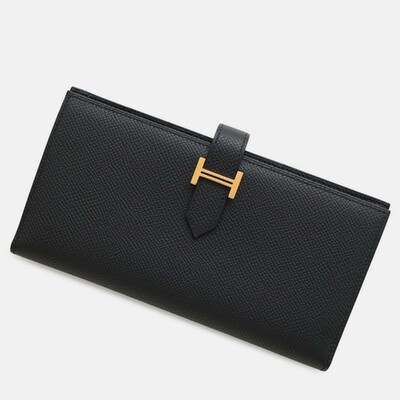 Hermès presents understated refinement in the Bearn Soufflet long wallet, crafted in black Epsom leather. Its elongated design highlights a mastery of form and subtle luxury. A timeless piece, it brings sophistication to everyday essentials.