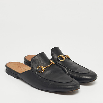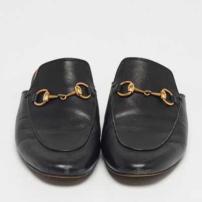 Gucci Black Leather Princetown Horsebit Flat Mules Size 36 1227842 (чёрный, lpn31045602)