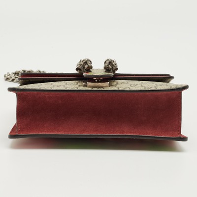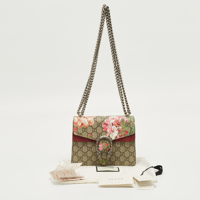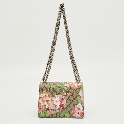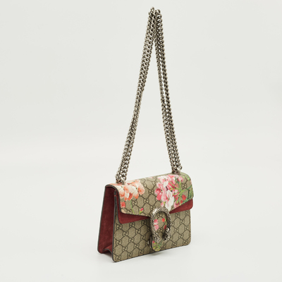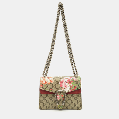 The Dionysus shoulder bag blooms in GG Supreme canvas, scattered with florals in dreamy tones. The antique silver tiger head clasp anchors its poetic energy with edge. Compact in scale but rich in detail, it’s a bag that tells its story in glances.