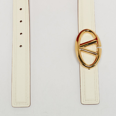 Versatile and elegant, this Valentino belt features a reversible design in cream and pink leather. The polished VLogo buckle accentuates its refined aesthetic, offering two styling moods in one piece. Ideal for pairing with dresses or high waisted trousers, it reflects modern femininity through Italian artistry.