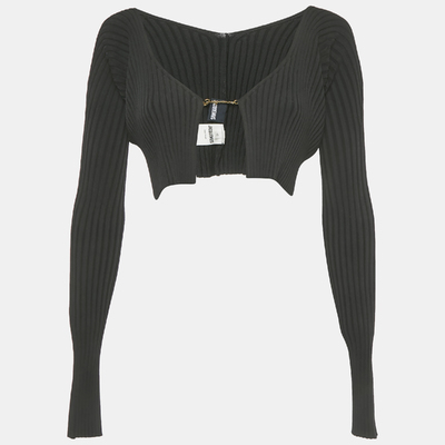 Jacquemus’ rib knit cardigan reimagines playful femininity with a modern sensibility. The cropped length, tonal logo detail, and soft texture evoke the brand’s youthful spirit rooted in Mediterranean ease. Pair it with tailored pants or midi skirts to mirror Jacquemus’ contemporary yet romantic design codes.