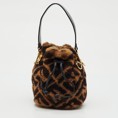 Fendi Brown Shearling Fur and Leather Mini Mon Tresor Drawstring Bucket Bag 1224895 - 1 small