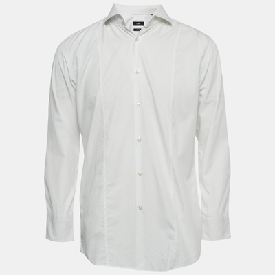 Clean and classic, the Philip shirt by Hugo Boss is tailored in crisp white cotton with a slim fit silhouette. Versatile enough for business meetings or refined casual looks, it delivers effortless sophistication. A staple piece for the modern wardrobe.