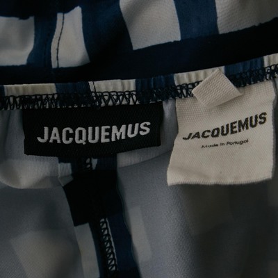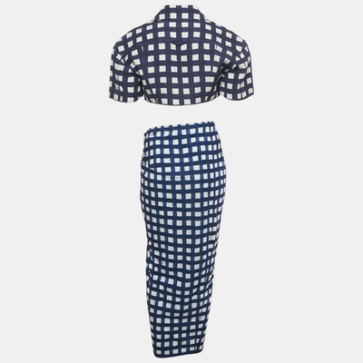 Jacquemus Navy Blue/White Checkered Silk Blend & Jersey Crop Top & Skirt Set S 1224955 (lpn31045678)