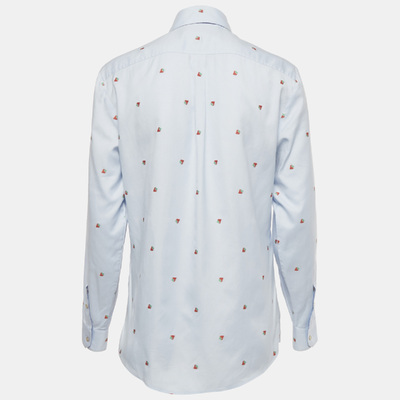 Gucci Blue Strawberry Embroidered Cotton Shirt S 1224792 - 1
