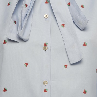 Gucci Blue Strawberry Embroidered Cotton Shirt S 1224792 (голубой, lpn31045680)
