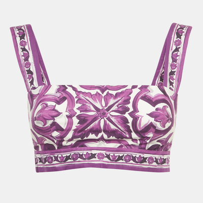Dolce&Gabbana Purple Majolica Print Cotton Crop Top S 1222576 (фиолетовый, lpn31045695)