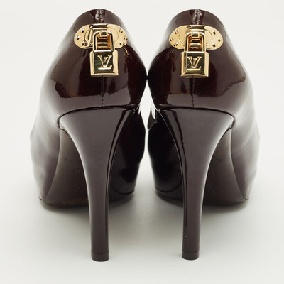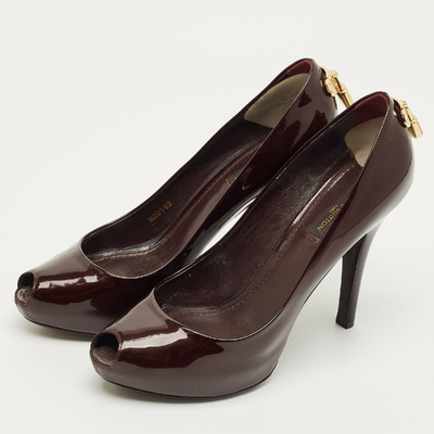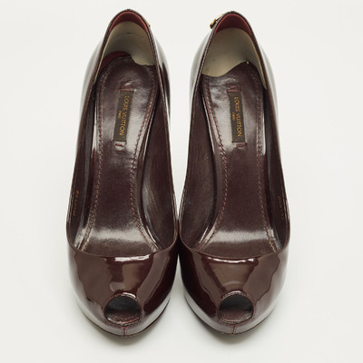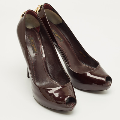Louis Vuitton Burgundy Leather Oh Really! Peep Toe Pumps Size 37.5 1228013 (lpn31045730)
