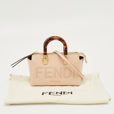Fendi’s Mini By The Way bag exudes charm in soft peach leather. Defined by its sleek duffle silhouette and dual zip design, it’s both polished and functional. The petite profile transitions easily from daywear to evening elegance—a refined staple in contemporary luxury.