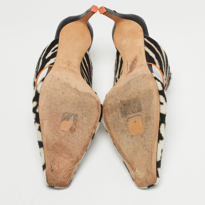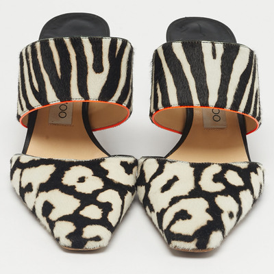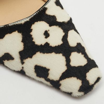 These preloved Jimmy Choo mules pair calf hair and a covered toe atop a 7 cm heel. The contrast of pattern and texture gives them an editorial edge — bold enough for statement dressing, yet grounded in fine Italian craftsmanship. Style them with tailored neutrals to let the shoes lead the story.