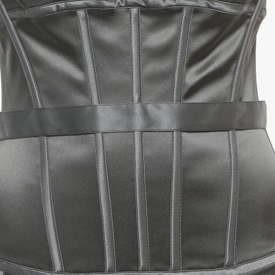 Dolce and Gabbana’s black satin corset dress channels pure Italian sensuality. Sculpted to perfection, it features boning for structure and a fitted silhouette that defines the figure. With its romantic curves and smooth finish, this piece captures the maison’s dedication to craftsmanship and empowered femininity.