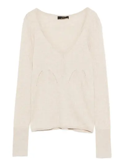 sand beige V-neck ribbed knit long sleeves fitted cuffs