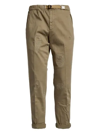 beige elasticated waistband front welt pockets back flap pocket back welt pocket distressed effect