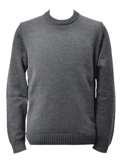 grey crew neck long sleeves ribbed knit ribbed hem ribbed cuffs