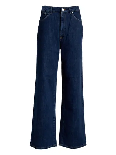 dark blue denim five pockets belt loops button fastening zip fly