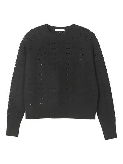 black wool lace knit round neck long sleeves ribbed hem ribbed cuffs