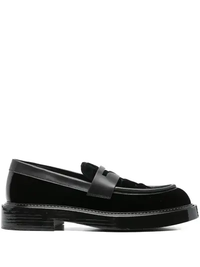 black leather trim penny slot flat sole slip-on style