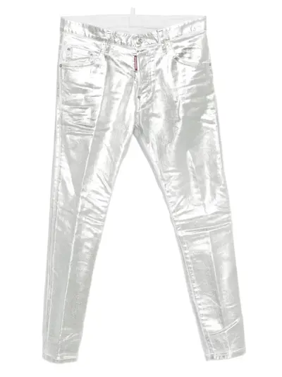 silver-tone metallic finish classic five pockets belt loops concealed fly and button fastening mini logo tag