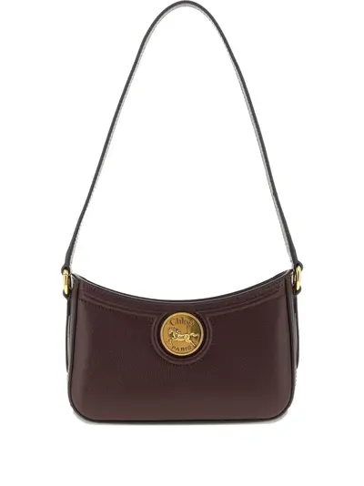 brown Horse Medal gold-tone fixed handle top zip closure buffalo leather