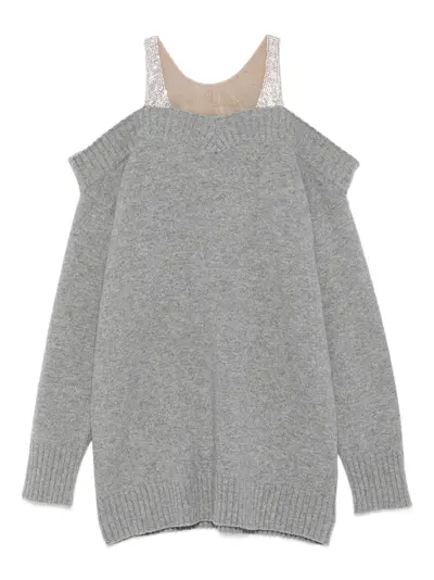 grey embellished straps long sleeves ribbed hem