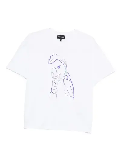 white cotton graphic print to the front round neck short sleeves