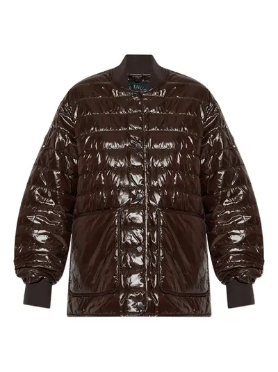 brown quilted front pockets press-stud fastening round neck long sleeves