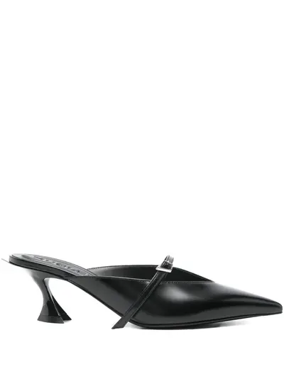 black leather pointed toe buckle-fastening ankle strap branded insole sculpted heel