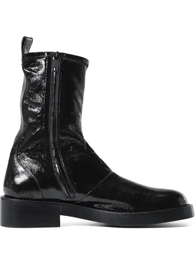black side zip fastening pull-tab at the heel patent finish rubber sole