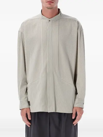 green striped pattern concealed fastening mandarin collar long-sleeves logo detail