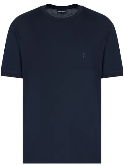 midnight blue embroidered logo at the chest crew neck short sleeves