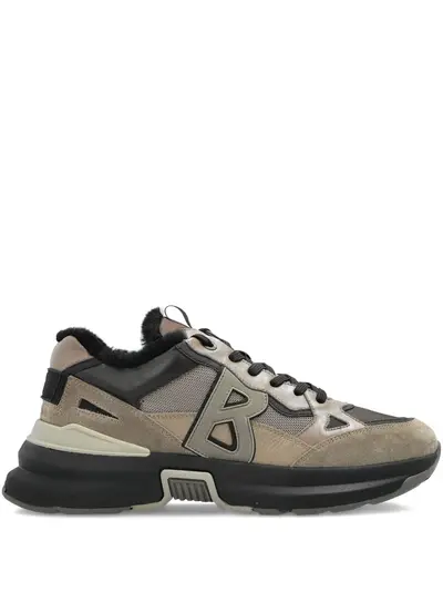 taupe brown logo appliqué panelled design lace-up fastening ridged sole