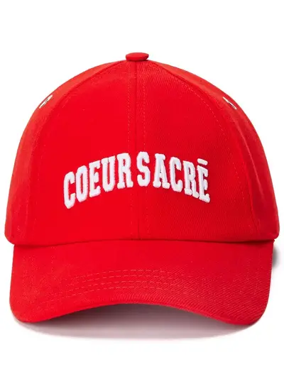 bright red cloud white cotton logo patch to the front curved narrow brim adjustable strap to the rear