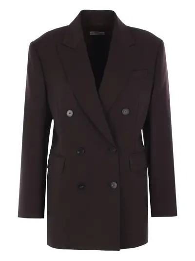 brown double-breasted button fastening notched lapels front flap pockets buttoned cuffs