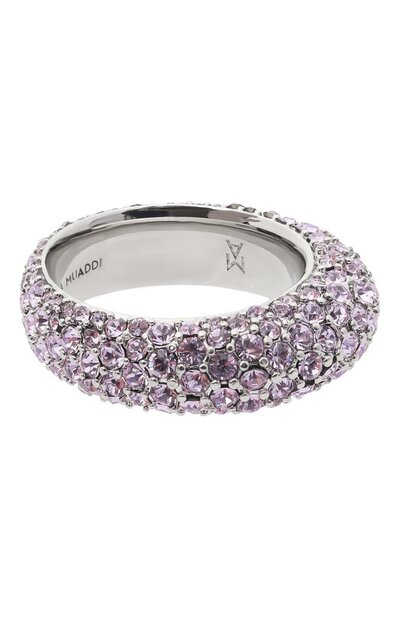 Кольцо Cameron из латуни инкрустировали паве из кристаллов. Шинку с внутренней стороны дополнили выгравированным логотипом.